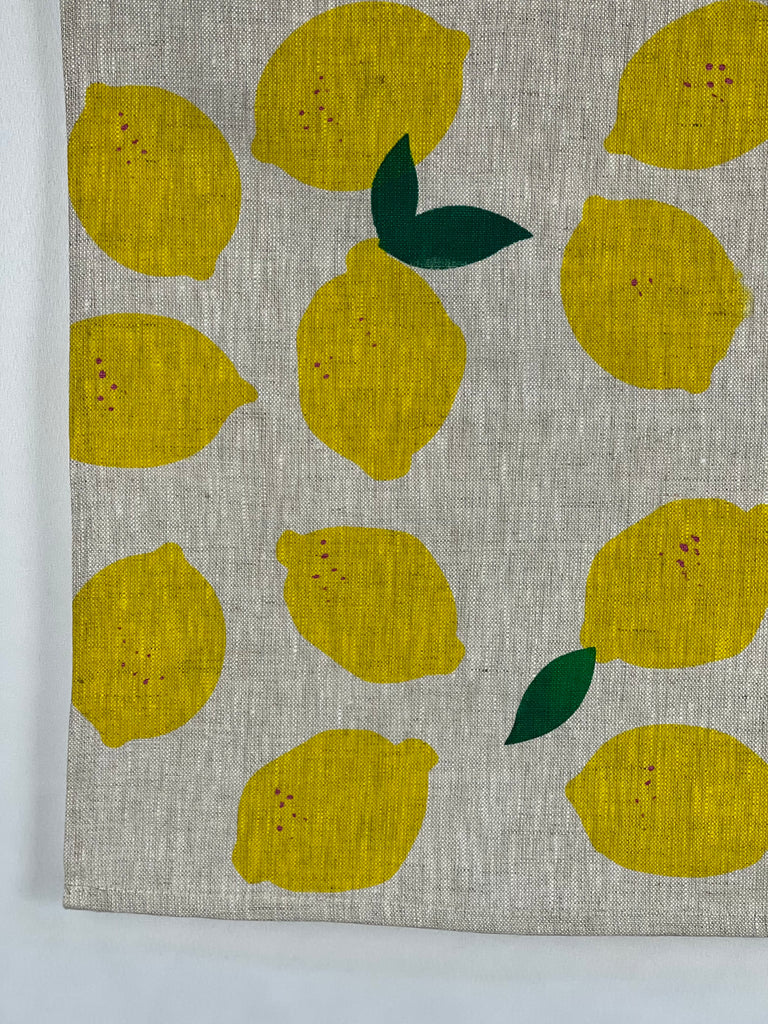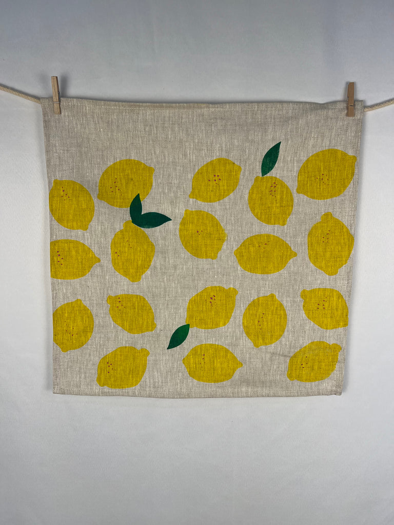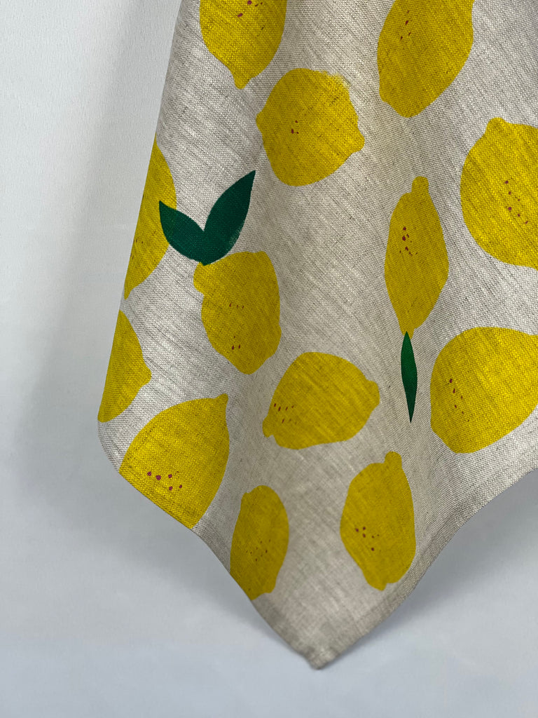 uniquely designed and handprinted using eco-friendly inks onto premium oatmeal linen, these 'citrus got real' napkins adds some summer zest to the table.