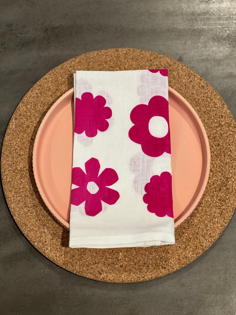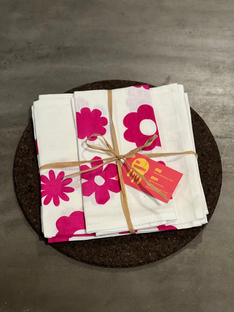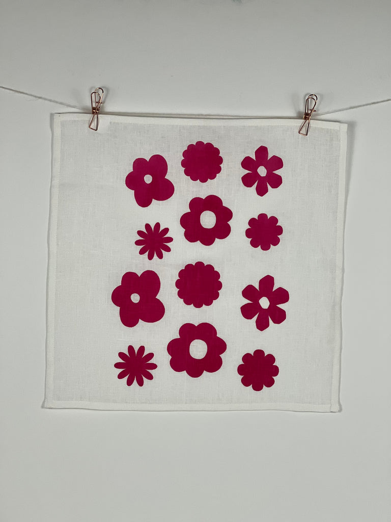 uniquely designed and handprinted using eco-friendly inks onto premium linen, these bright fuchsia 'once and floral' flower napkins will be in bloom all year round.