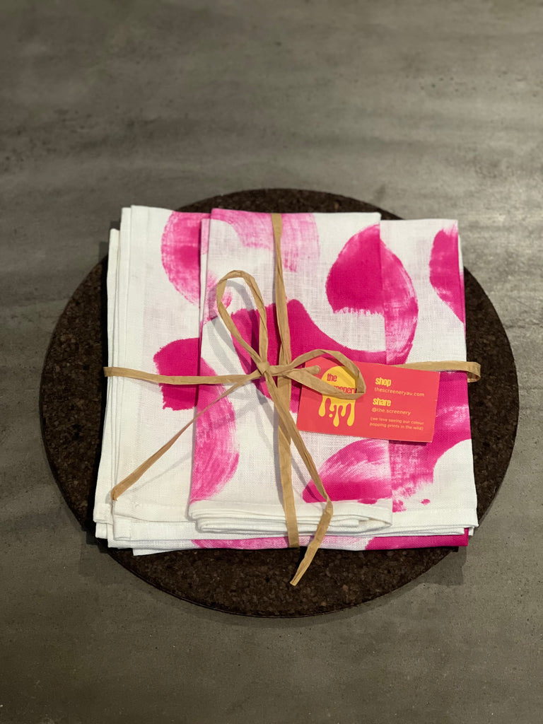 painted love - fuschia brushed linen napkins (set of four)