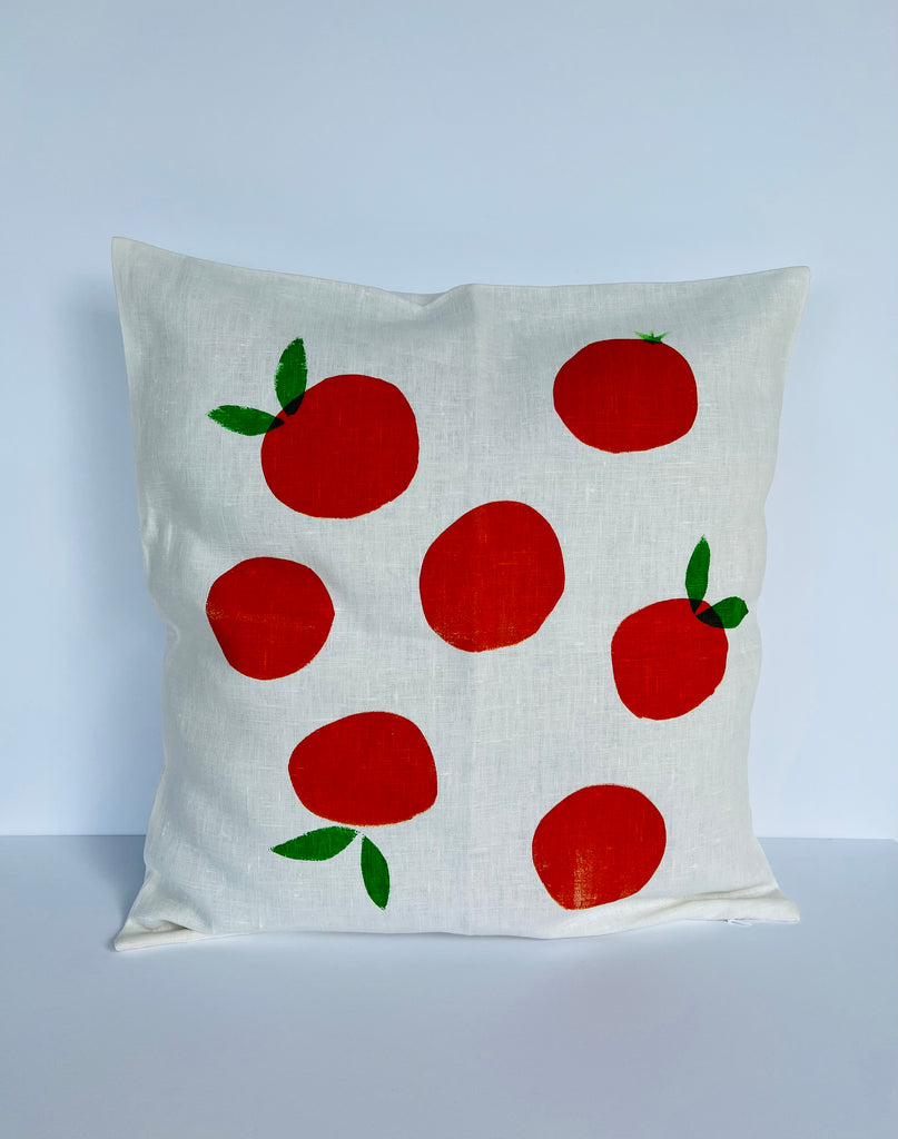 Uniquely designed, and screen printed using eco-friendly inks onto premium white linen, this zesty cushion cover will add a pop of colour to your couch!